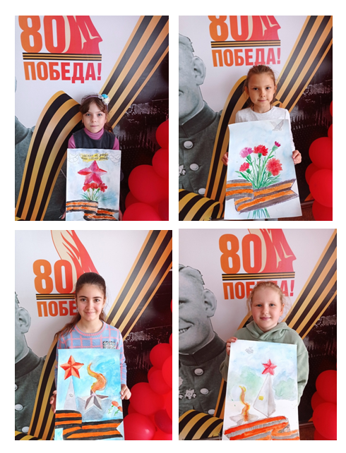 На занятии учащиеся творческого объединения «Волшебная палитра» (руководитель — И.А. Суркова) в своем рисунке изобразили Георгиевскую ленточку в память о подвиге героев Великой Отечественной войны.