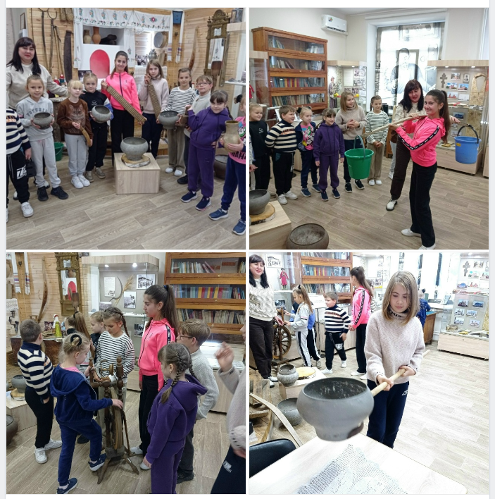 🗣️В рамках недели, посвящённой международному празднику — Дню туризма, учащиеся творческого объединения «Волшебная палитра» имели возможность прикоснуться к истории крестьянского быта. Они могли примерить на себя роль наших предков, взяв в руки чугунок на ухвате, ведро с водой на коромысле, покрутить прялку и даже подержать в руках настоящие железные утюги.