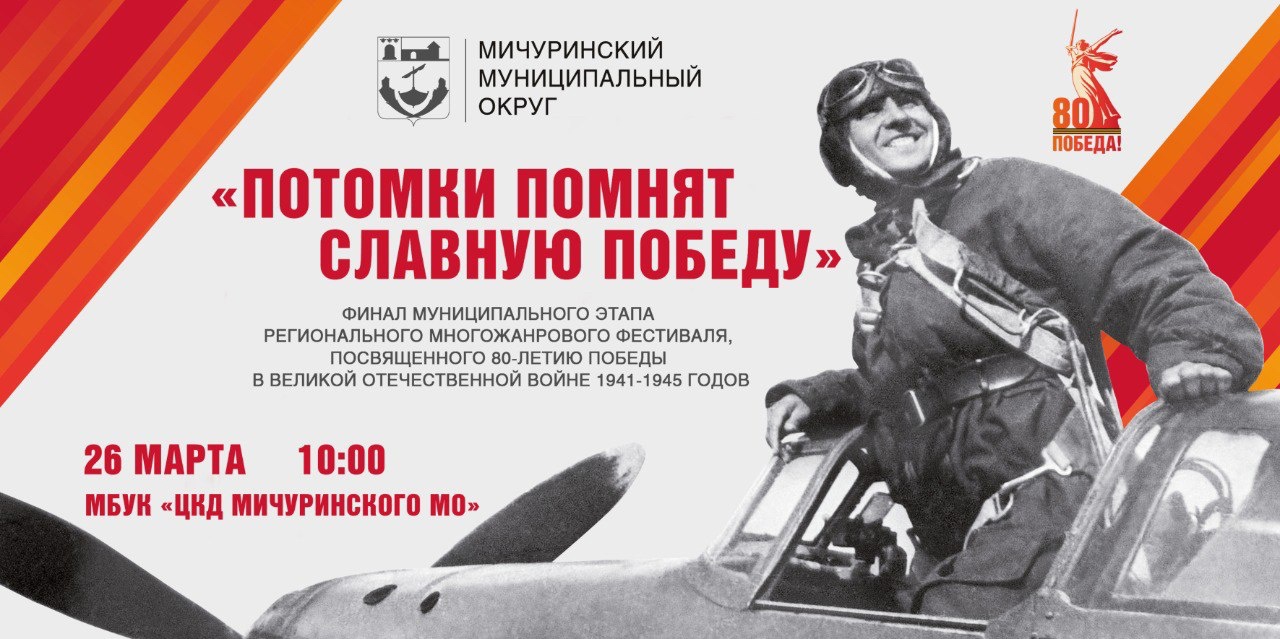 Потомки помнят славную Победу Главная страница 21.02.2025 0 Афиша фестиваля Сценарий муниципального этапа регионального многожанрового фестиваля посвящённого 80-летию Победы в Великой Отечественной войне 1941 – 1945 годов «Потомки помнят славную Победу» Видео фестиваля (ссылка для скачивания) Автор arina-mich@yandex.ru